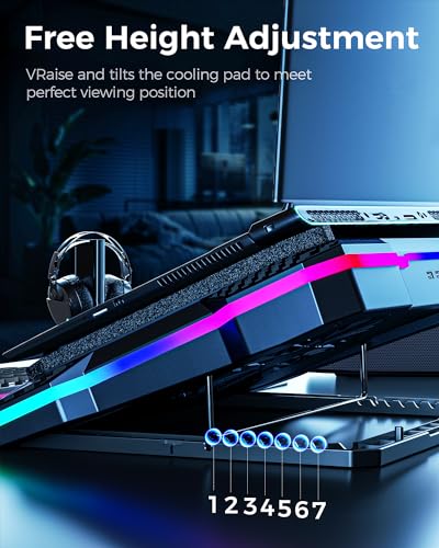 Rapid Cooling: Equipped with a 5.5-inch large turbofan and sealed foam, this cooling pad provides 360-degree surrounding cooling with no air leakage. Adjust the fan speed from 0-2200 RPM to suit your specific needs, whether for office tasks or heavy gaming.